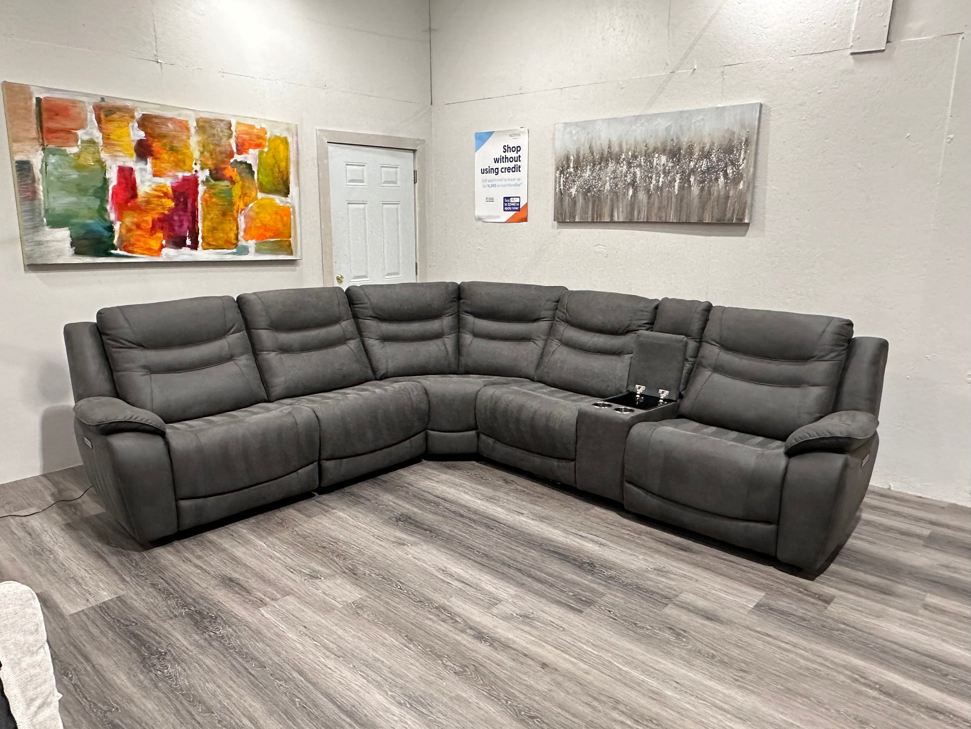 Dark gray suede sectional power recliner